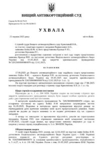 В январе этого года стало известно, что следственный судья ВАКС отменил постановление детектива НАБУ Бирюкова о закрытии уголовного производства № 52024000000000420 от 12.08.2024 в отношении Виталия Шабунина. Об этом сообщил известный юрист Ростислав Кравец. Из постановления следственного судьи, по его словам, следовало, что в деле Шабунина детектив НАБУ Бирюков небрежно провел досудебное расследование. В частности, он не исследовал всех признаков уголовных правонарушений.